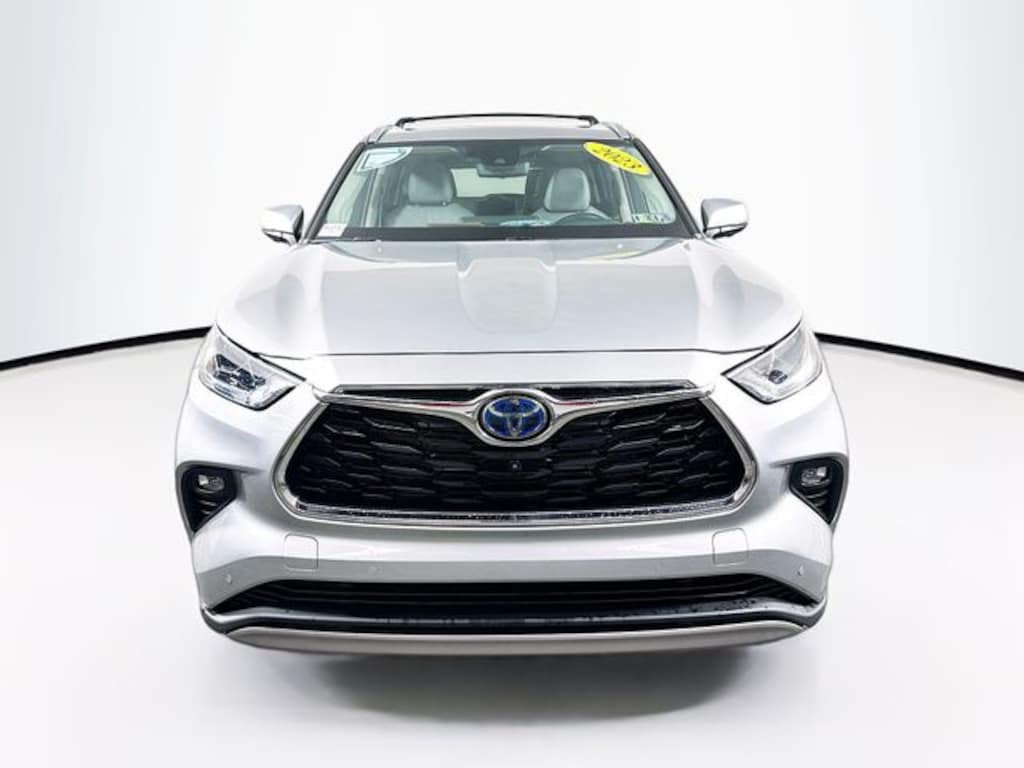 2023 Toyota Highlander Hybrid Platinum 2.5L I4 PDI Hybrid DOHC 16V LEV3-SULEV30 eCVT AWD 4D Sport Utility Silver Auto Reward Program, Free First Oil Change, Highlander Hybrid Platinum, 4D Sport Utility, 2.5L I4 PDI Hybrid DOHC 16V LEV3-SULEV30, AWD, Silver, Black Leather, High Grade LED, Panoramic Moonroof, Panoramic View Monitor, Platinum Package.